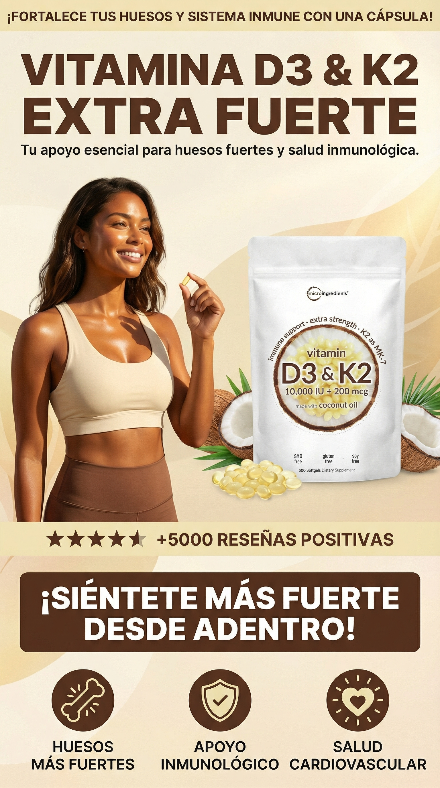 Llevo varias semanas tomándola y me siento con más energía en el día a día. Me gustó que combine D3 con K2, se nota una fórmula bien pensada.